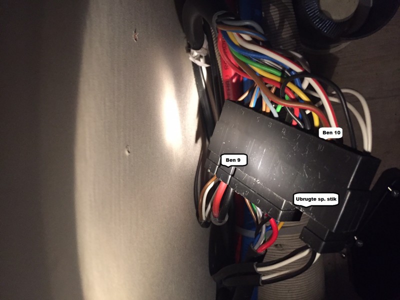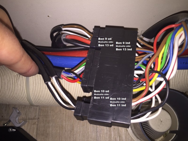 I vores Fendt Tendenza fra 2013, var alle ledninger fra det 13 polede stik, trukket hen til en klemrække, hvorfra ben 10 og 11 ikke var trukket videre. I stedet var ben 9 og 11 trukket videre til en samlemuffe, hvorfra strøm til køleskab og konstant strøm kunne forgrenes. Tricket var at tage ledningerne til køleskabet ud af samlemuffen, og forbinde dem til nogle ledninger der monteres i klemrækkens ledige ben 10 og 11.